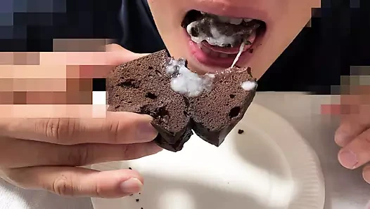 Ejaculate and eat delicious-looking chocolate brownies