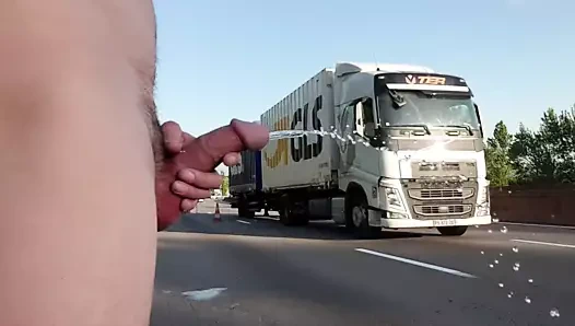 Trucker piss and cum in a public park