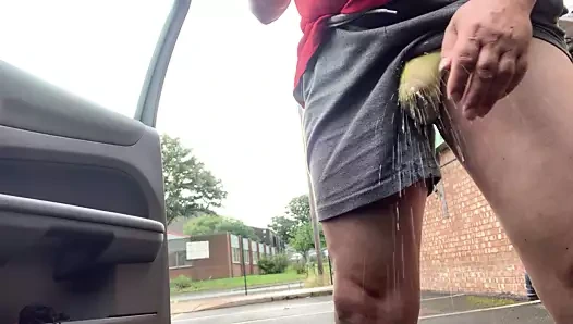Peeing and cumshot on carpark